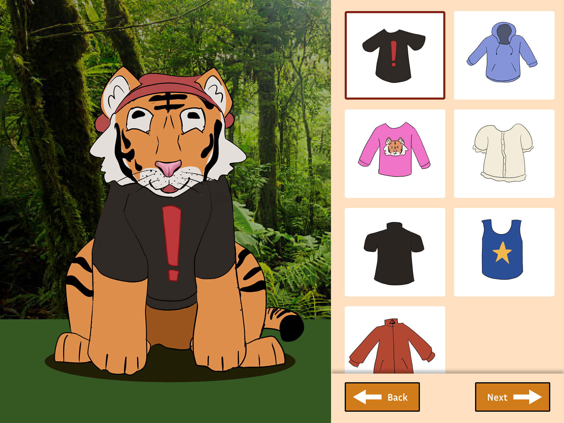 My third year at RIT, I was tasked with creating kiosk prototypes for a fictional company I created called Discover Wild Pals. Discover Wild Pals as I conceived it was an educational stuffed animal toy line. Similar to Build-a-Bear, the idea was that they had a physical store that users could visit, and there was a kiosk inside where the user could choose an animal, learn more about that animal and the habitat it lived in, and then design a custom plush using different clothing options and eventually naming the plush at the end of the experience.